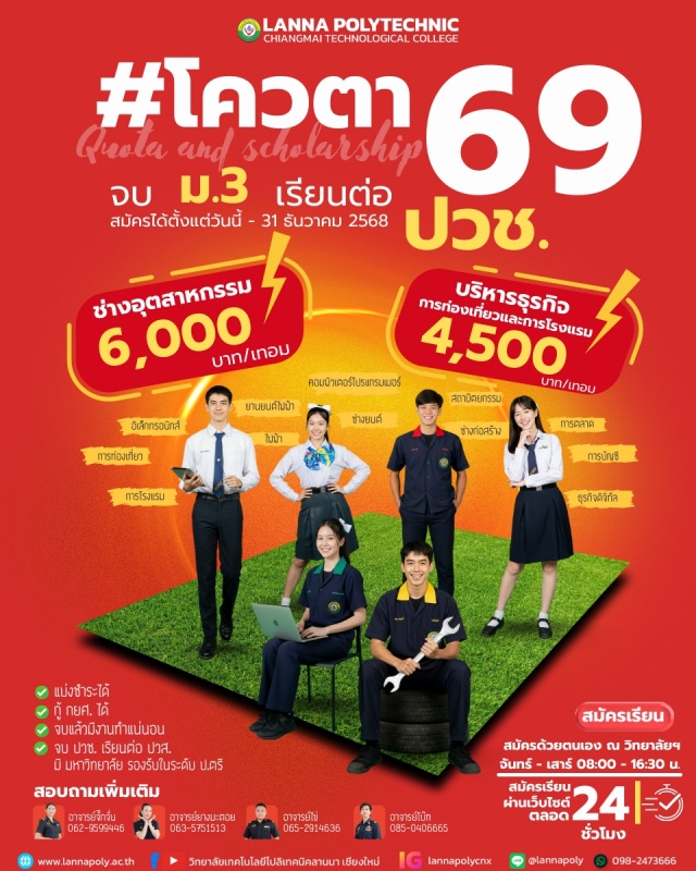 ประชาสัมพันธ์โครงการ "เรียนดี มีโอกาส" ระดับประกาศนียบัตรวิชาชีพ (ปวช.) สำหรับผู้ที่จบ ม.3 หรือเทียบเท่า ประจำปีการศึกษา 2569