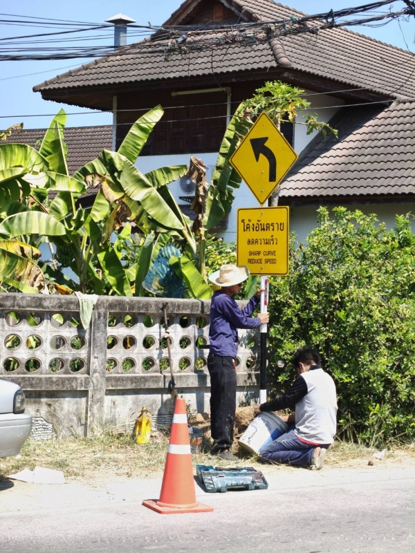 - ติดตั้งป้ายเตือนสัญลักษณ์ทางโค้งและป้ายเตือนโค้งอันตราย จำนวน 1 จุด บริเวณก่อนถึงวัดหัวดง หมู่ที่ 3