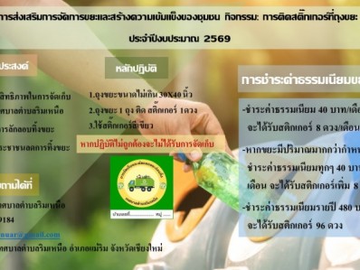ประชาสัมพันธ์ การเข้าร่วมโครงการส่งเสริมการจัดการขยะและสร้างความเข้มแข็งของชุมชน กิจกรรม การติดสติ๊กเกอร์ที่ถุงขยะ ประจำปีงบประมาณ 2569