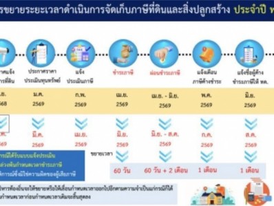 ประชาสัมพันธ์การขยายกำหนดเวลาดำเนินการตามพระราชบัญญัติภาษีที่ดินและสิ่งปลูกสร้าง พ.ศ.2562 ประจำปี พ.ศ. 2569