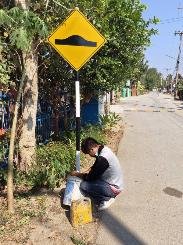 - ติดตั้งป้ายเตือนสัญลักษณ์ทางโค้งและป้ายเตือนโค้งอันตราย จำนวน 1 จุด บริเวณก่อนถึงวัดหัวดง หมู่ที่ 3