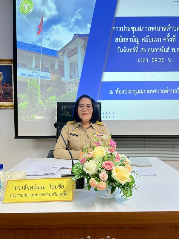 นางจันทร์หอม โสมชัย ประธานสภาเทศบาลตำบลริมเหนือ เป็นประธานในการประชุมสภาเทศบาลตำบลริมเหนือ สมัยสามัญ สมัยแรก ครั้งที่ 1/2569