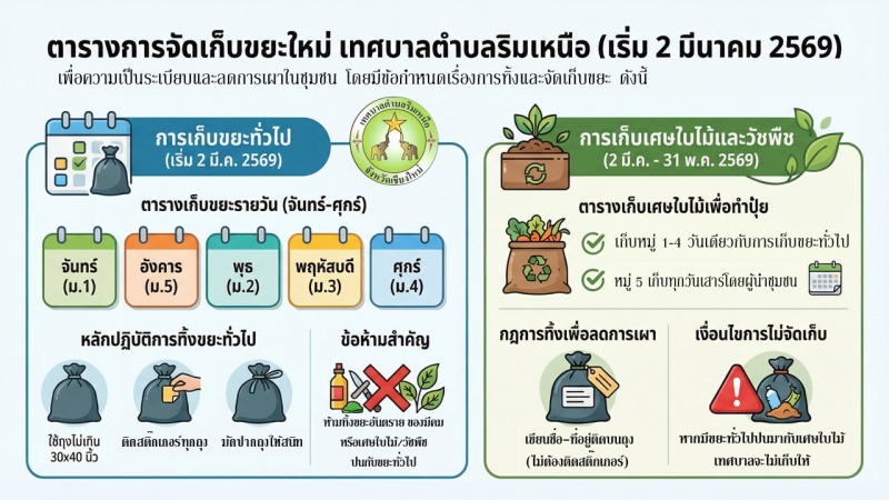 การปรับเปลี่ยนวัน เวลา และสถานที่ในการจัดเก็บขยะของเทศบาลตำบลริมเหนือ