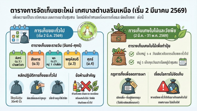 การปรับเปลี่ยนวัน เวลา และสถานที่ในการจัดเก็บขยะของเทศบาลตำบลริมเหนือ